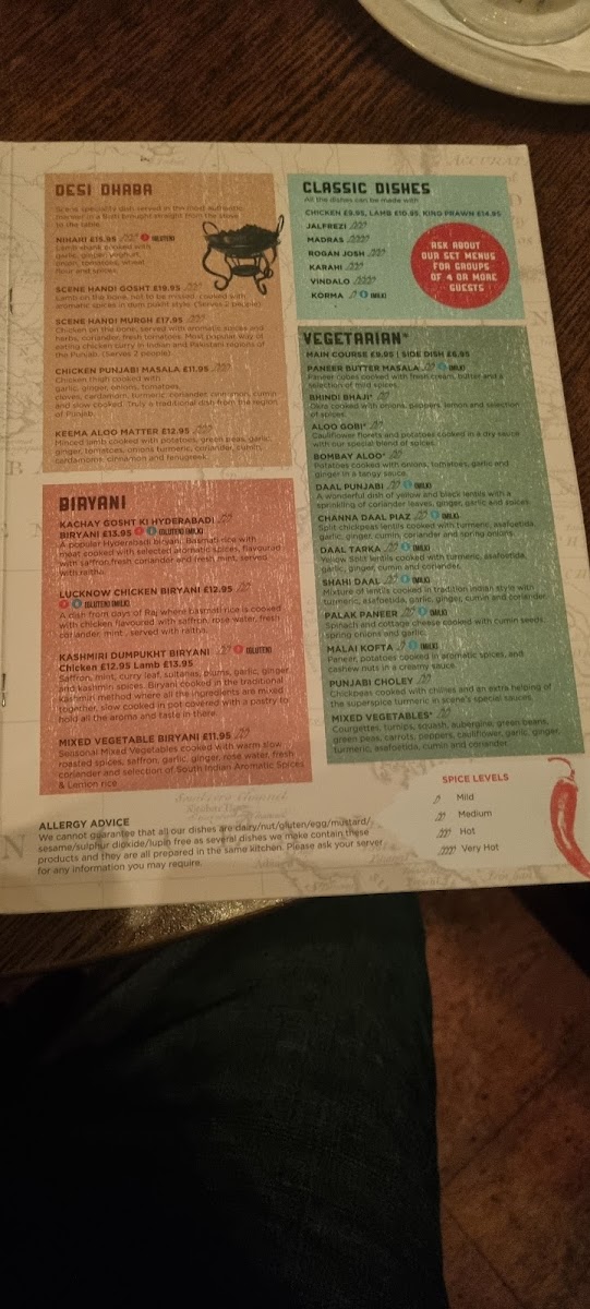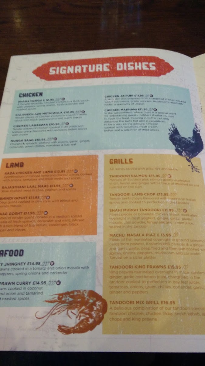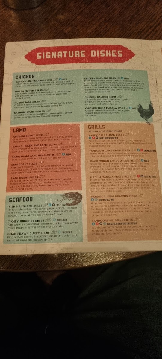 For main dishes, the Safed Murgh Karahi showcases a Lahori classic with fragrant spices, yogurt, and fresh coriander, while the Murgh Saag blends tender chicken with spinach and robust spices for a comforting meal. The menu also features tempting starters like poppadoms, bhelpuri, and hummus served with naan, perfect while you wait.